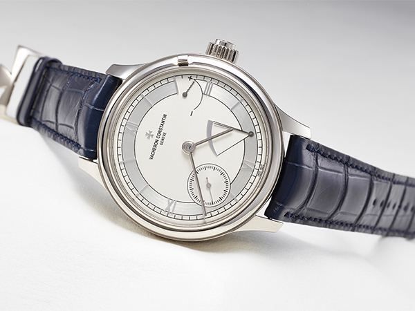 延續Patrimony逆跳日期跨越面盤半邊的搶眼設計,今年推出在六點鐘加入月相的款式。內裝品牌自製2460 R31L手上鍊機芯,所有功能皆可由單一錶冠操作。據日內瓦印記認證。直徑42.5mm/18K白金/參考價NTD 1,390,000