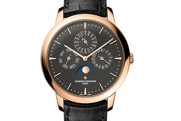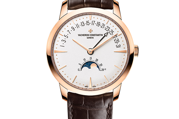 以務實配戴為主要訴求的Patrimony月相逆跳日期腕錶,同步發表白金與玫瑰金兩種款式,提供不同選擇。精準月相每122年才會有一次誤差。直徑42.5mm/18K玫瑰金/參考價NTD 1,390,000