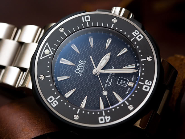 錶殼採用鈦合金材質,搭配陶瓷旋轉錶圈。腕錶最大的特色就是防水深度可達1,000米,如此防水深度的潛水錶,一定少不了排氦裝置,當然這款錶也沒有少。錶冠使用ORIS安全旋轉系統,讓防水起來更安心。