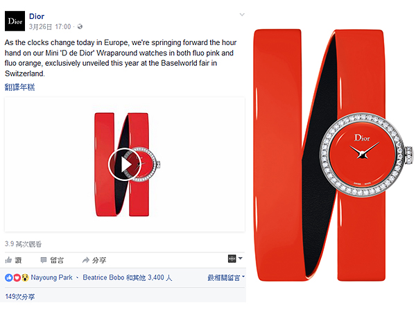 隨著數位時代的來臨,鐘錶品牌不但要決戰實體通路,也在線上雲端開闢新戰場。來自瑞士日內瓦的市場研究機構Digital Luxury Group就針對2017年巴塞爾錶展Baselworld期間,各大鐘錶品牌臉書的使用情形以及表現狀況來統計,總共針對62家鐘錶品牌做調查,為期一個禮拜,來找出錶展期間的新媒體贏家。