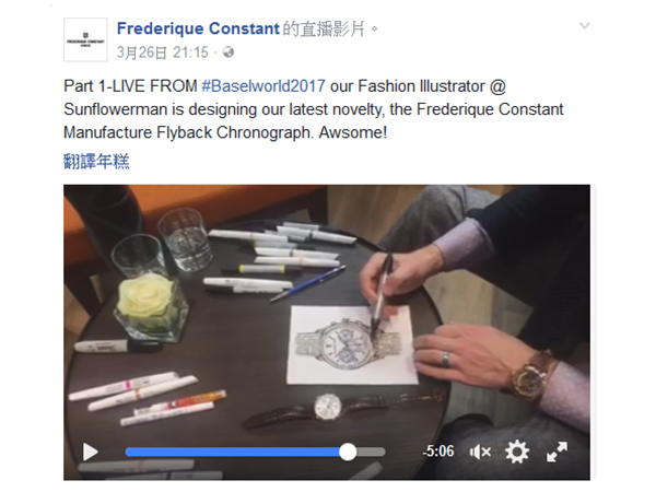 即便粉絲減少,康斯登今年錶展期間還蠻有梗的,包含使用360度環景功能讓粉絲透過臉書就能一窺康斯登在展場的攤位,並且舉辦競賽來讓優勝的粉絲能獲得一趟前往Baselworld的VIP之旅。此外,康斯登也將藝術設計師於錶展現場繪製腕錶的過程直播到臉書上,讓粉絲更有參與感。