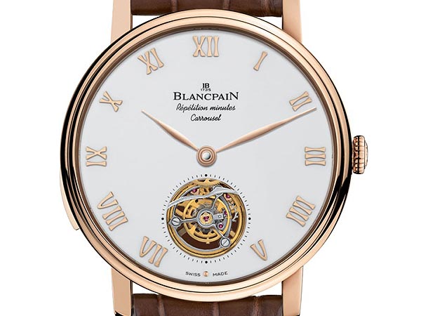 接下來看到活動人偶中不可或缺的春宮腕錶,而說到春宮腕錶最有名的就是寶鉑以及雅典錶,首先就來看看寶鉑BLANCPAIN這款卡羅素春宮三問腕錶。要同時在小小的腕錶內加入活動人偶與三問報時,對製錶師來說是極大的考驗。因此寶鉑在2006年開始就將春宮三問錶的機芯加以改良,一方面希望三問聲響能更加清脆響亮,另一方面則能增加活動人偶裝置空間。之後在2011年時更是加入品牌當家的“一分鐘飛行卡羅素”於三問春宮活動人偶腕錶內,可說是一大突破。