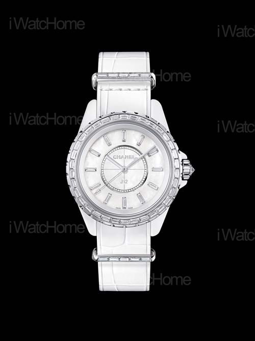 簡介 18K白金錶圈鑲嵌34顆長階梯形切割鑽石(約2克拉)/白色珍珠母貝錶面鑲嵌12顆長階梯形切割鑽石(約0.26克拉)/18K白金錶冠鑲嵌1顆明亮式切割鑽石(約0.09克拉)